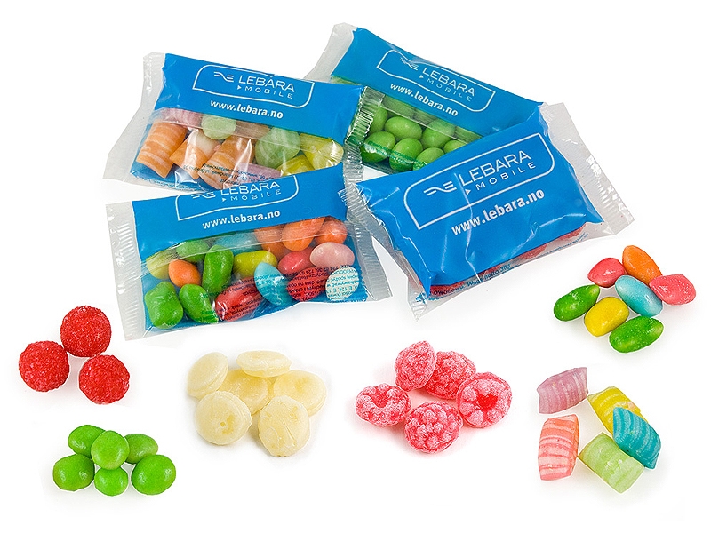 Kolorowe drażetki lub landrynki w różnych kolorach, smakach i kształtach. Pakowane w torebki z białej lub przezroczystej folii. Idealne rozwiązanie pod imprezę firmową, targi, wystawy, miejsca kontaktu z klientem, gadżet.