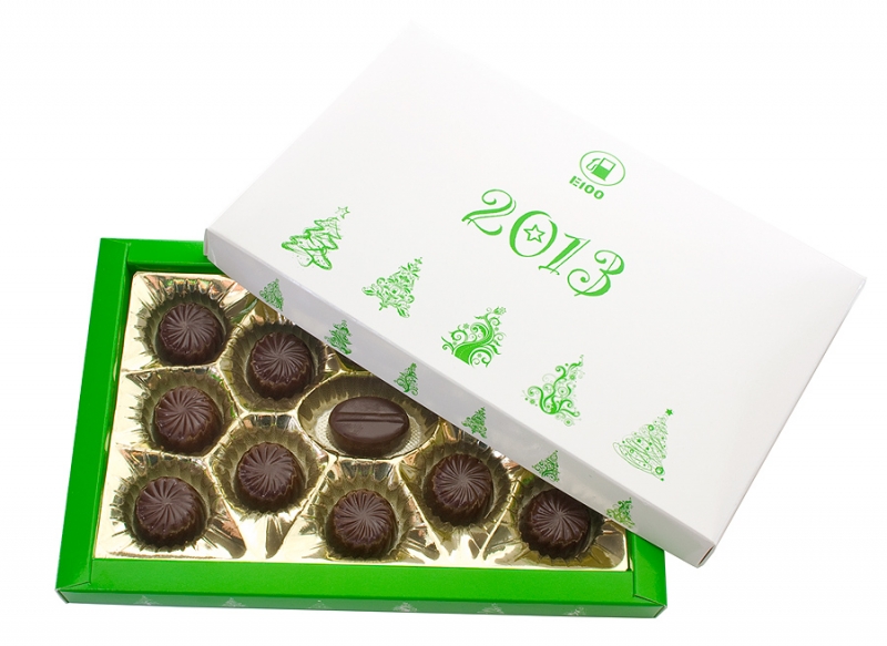 Trzynaście ręcznie wytwarzanych pralin z belgijskiej czekolady mlecznej lub deserowej. Srebrna lub złota wypraska. Dowolny nadruk CMYK lub do 4 kolorów Panteon. Dwuczęściowe opakowanie kartonowe. Opakowanie z kartonów metalizowanych ( złoty, srebrny) z tłoczonymi logotypami. Idealne rozwiązanie pod imprezę firmową, targi, wystawy, miejsca kontaktu z klientem, dla Kontrahentów.