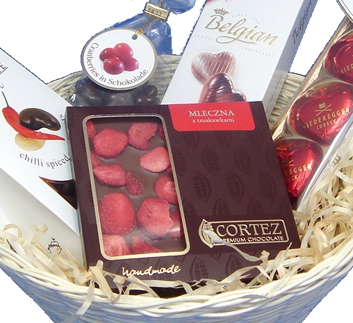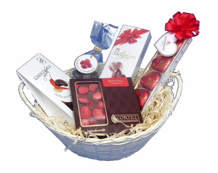 Kosz do wysyłki pakowany jest w ozdobny celofan.